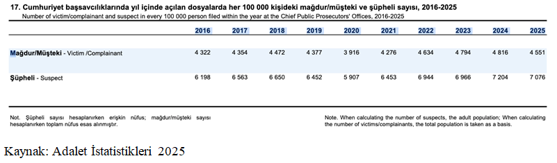 Sadece Savcılıklarda 1 Yılda %4,5 Şikâyetçi, %7,1 Şüpheli